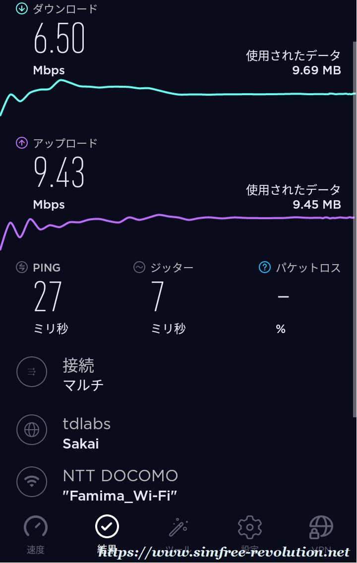 通信速度の測定結果